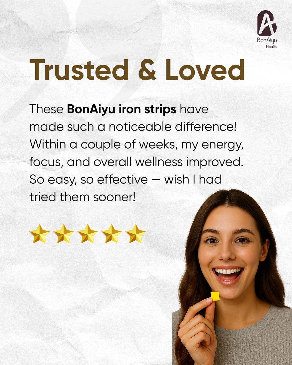 Support energy levels, reduce fatigue, and improve daily performance with Bonaiyu Liposomal Iron Strips. Designed to be gentle, highly absorbable, and stomach-friendly, these strips deliver iron using advanced liposomal technology, helping your body utilize more iron without the digestive discomfort commonly associated with regular iron tablets or syrups.